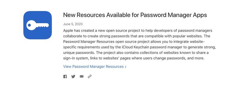 所謂的“密碼管理器資源”計(jì)劃是Apple的幾個(gè)開(kāi)源項(xiàng)目之一,該計(jì)劃允許密碼管理器應(yīng)用程序?qū)Cloud Keychain密碼管理器使用的網(wǎng)站的特定要求集成到自己的應(yīng)用程序中。Apple的目標(biāo)是允許加密應(yīng)用程序開(kāi)發(fā)人員在開(kāi)發(fā)資源上進(jìn)行協(xié)作,以提高質(zhì)量,記錄特定于站點(diǎn)的行為并提高用戶信任度。