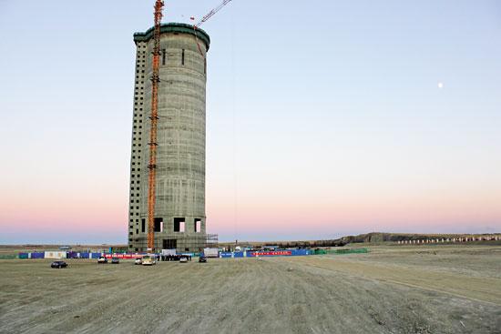 由于尿素造粒塔造粒工藝需求,其塔頂高度普遍 較高,部分塔頂除塵裝置排放口距地面超過100m,且由于塔形結(jié)構(gòu),其頂部平臺空間小,檢修不便、風 力載荷大。造粒工藝冷卻風量較大,其每1萬t的年產(chǎn)能,對應冷卻煙氣風量為1.5萬~ 2.0萬m3/h。一 座40萬t/a規(guī)模的尿素造粒塔高溫天氣下冷卻風量達 到80萬m3/h,較端高溫高濕情況下其冷卻風量還可能更高。