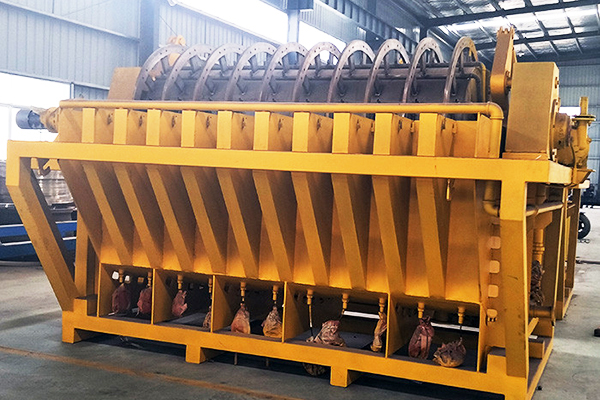 陶瓷過(guò)濾機(jī)是礦山特別是選礦廠采用浮選或磁選技術(shù)常用的一種高效節(jié)能的過(guò)濾設(shè)備。陶瓷過(guò)濾機(jī)分為吸漿區(qū)、干燥區(qū)、卸料區(qū)和反沖洗區(qū)。當(dāng)陶瓷過(guò)濾機(jī)開始工作時(shí),濾板浸入漿料槽中。在真空作用下,懸浮在漿槽中的精礦顆粒被吸附在濾板上,固體物料被截留在濾板上,濾液通過(guò)濾板。循環(huán)(多余部分也會(huì)排出);濾板離開漿槽進(jìn)入干燥區(qū),濾餅在真空作用下繼續(xù)脫水;干燥卸料區(qū)裝有刮板,用于刮除濾餅;卸料完成,濾板進(jìn)入反沖洗區(qū),過(guò)濾后的水通過(guò)分配頭進(jìn)入濾板,反沖洗濾板以洗掉堵塞在微孔中的顆粒,完成一個(gè)過(guò)濾操作循環(huán)。